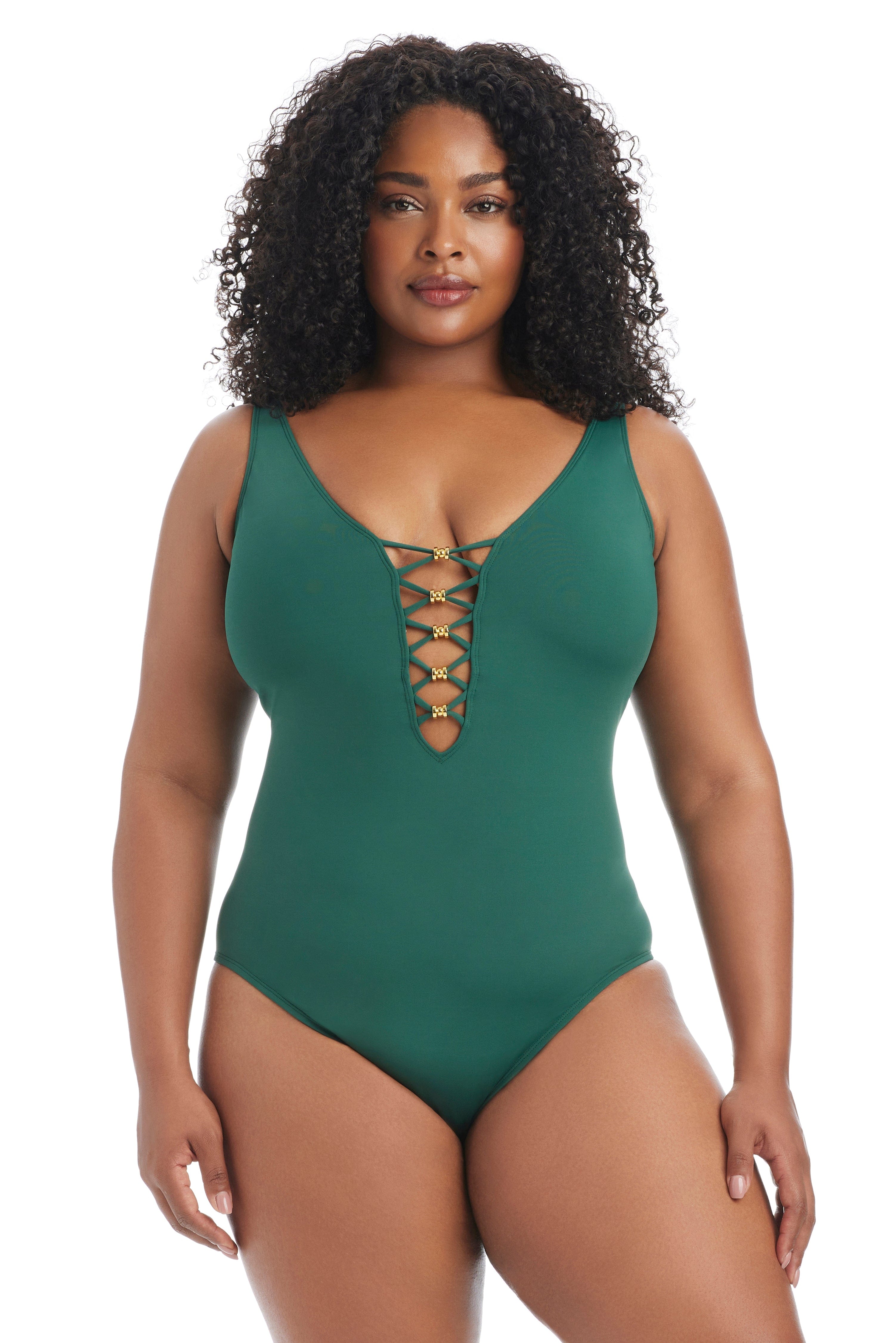 The Gold Lace Down One-Piece Swimsuit from our Let's Get Knotty collection gives a vertical impression to one’s look, making you leaner and taller.